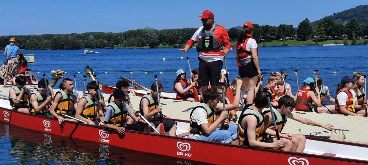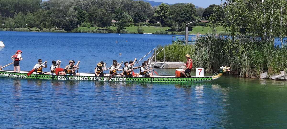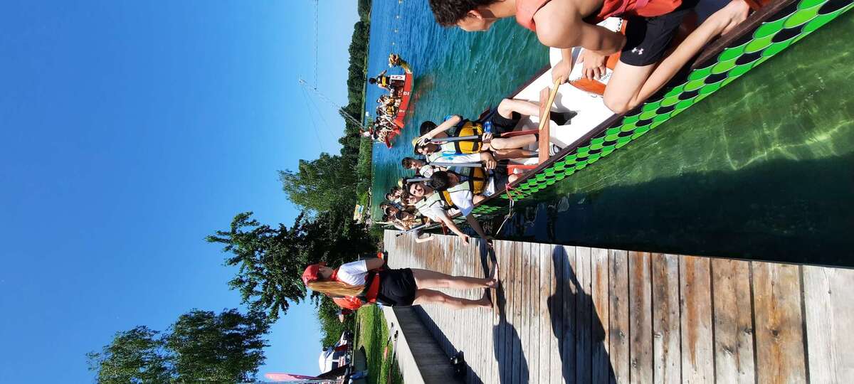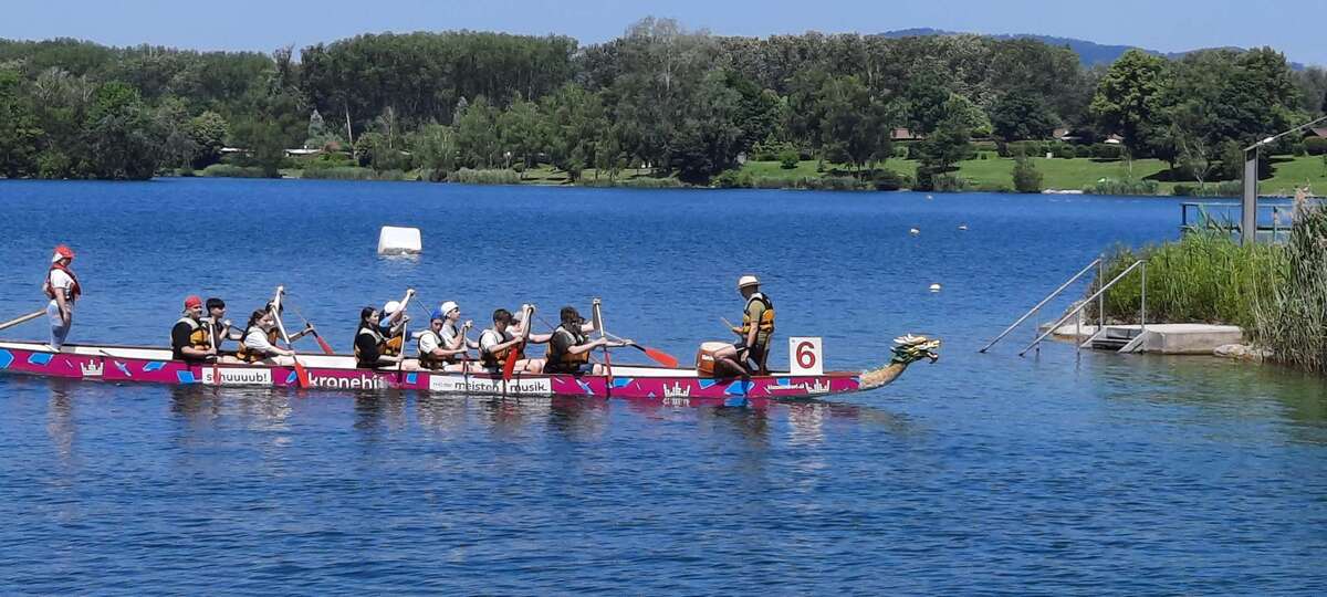 In den 12,40 Meter langen Booten mit jeweils 16 Paddler:innen und einem Trommler kam es nicht nur auf Kraft, sondern vor allem auf Taktgefühl und Teamarbeit an. Die Schülerinnen und Schüler bewiesen vollen Einsatz und sorgten für eine großartige Stimmung am Wasser.