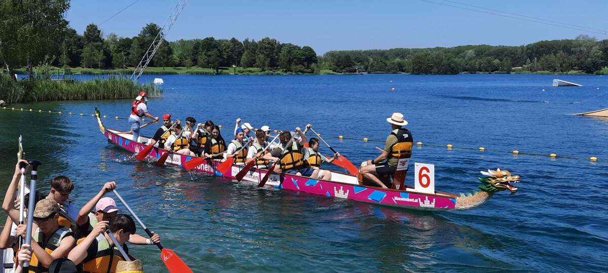 Am 12. Juni nahmen die ersten Klassen der HTL und Fachschule am spannenden Wettbewerb „Klasse im Boot“ teil. Bei strahlendem Wetter lieferten sich die vier Klassen in der Oberstufen-Kategorie mit anderen Schulen ein packendes Drachenbootrennen am Ausee in Asten.