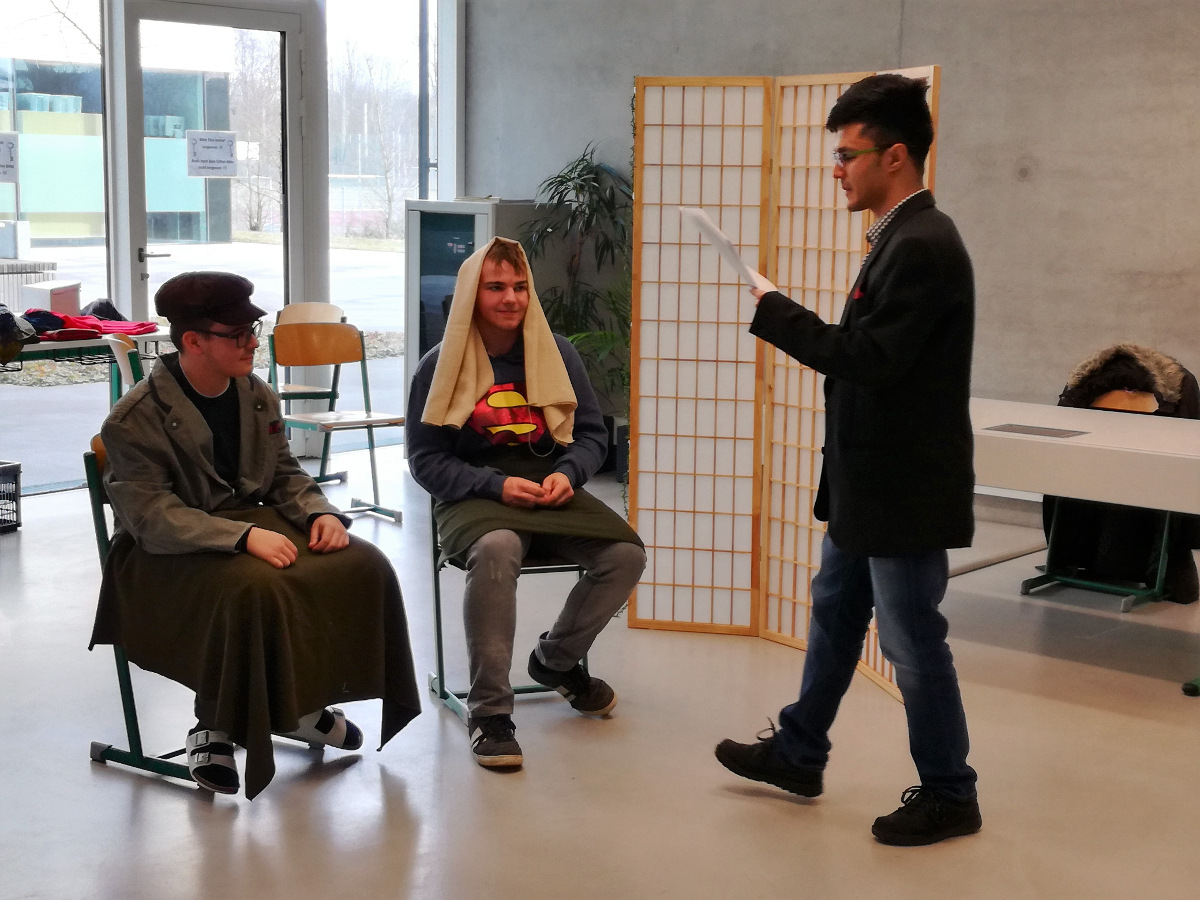Unterhaltsame Stunden bei szenischer Lesung und eigenem Rollenspiel zu Nestroys Stück „Höllenangst“ erlebten Schüler der 2 BHIT und 2 AFID im Rahmen einer literarischen Veranstaltung mit der Schauspielerin und Theaterpädagogin Irmgard Bauhofer am 15.2.18 im Aulasaal der HTBLA Traun.