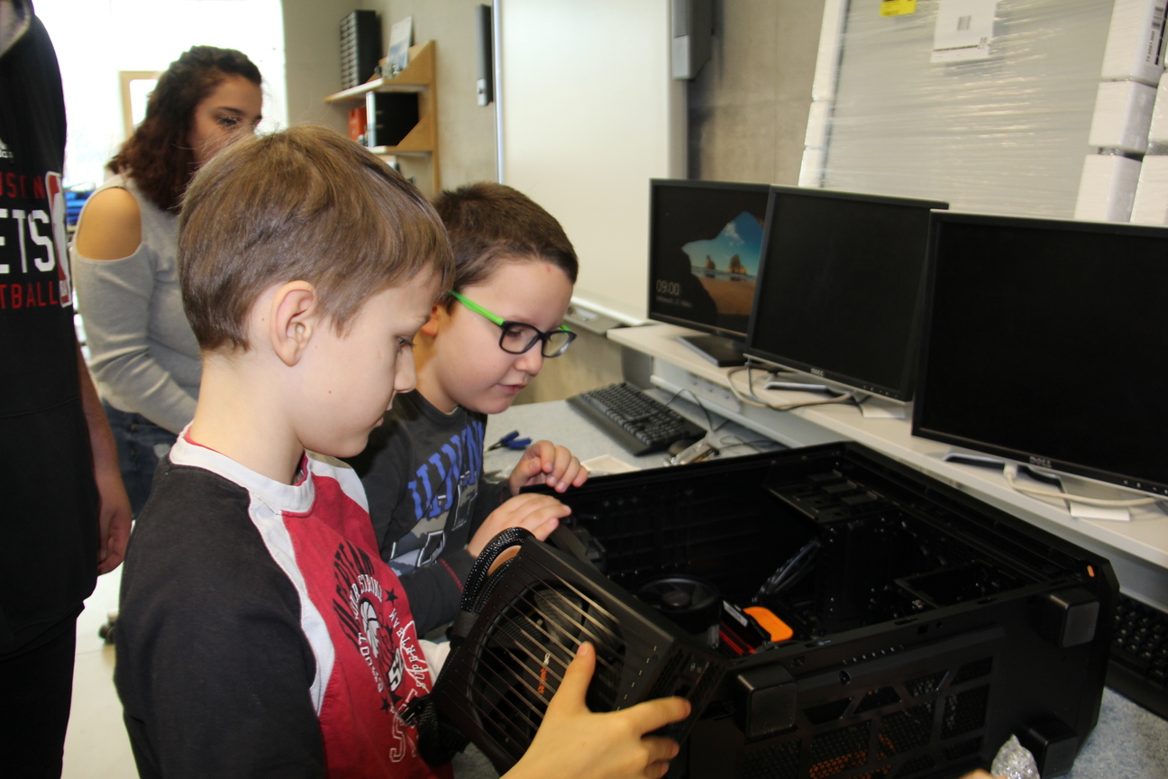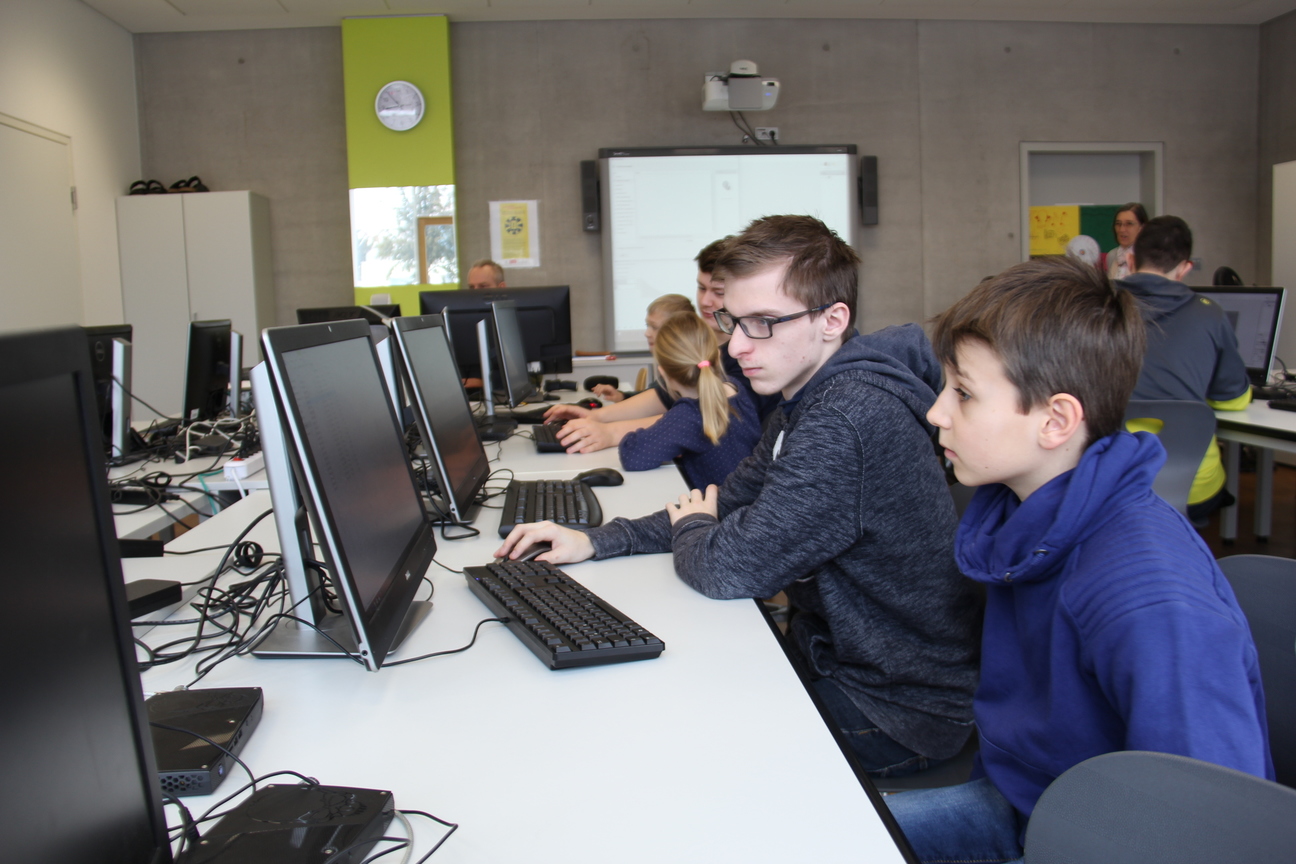 Die Lehrkräfte ermöglichten unseren jungen Besucherinnen und Besuchern – natürlich mit tatkräftiger Unterstützung unserer Schülerinnen und Schüler – einen spannenden und abwechslungsreichen Vormittag. Mit Begeisterung versuchten sich die Schülerinnen und Schüler im Stanzen, Erstellen von Stromkreisen, der Bildbearbeitung und erkundeten das Innenleben eines Computers.