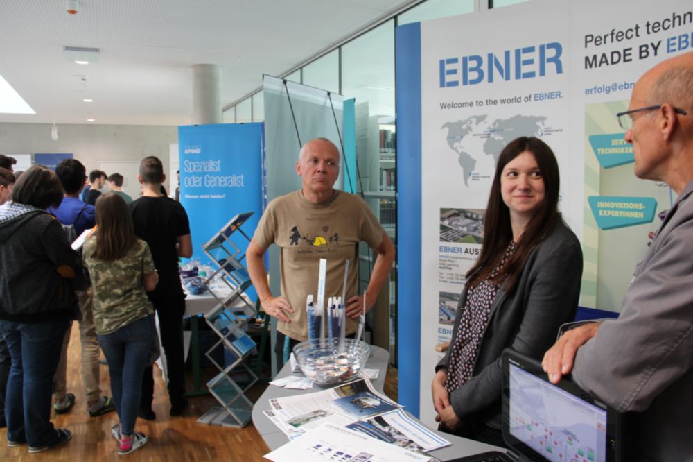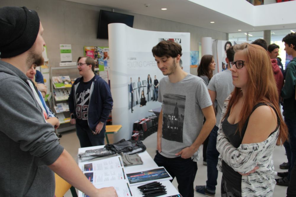 Bei diesem Informationstag hatten die 27 Firmen in der Schulaula und im 1. Stock der Schule Stände aufgebaut, an denen sie ihr Unternehmen präsentieren und neue MitarbeiterInnen finden konnten. Für die SchülerInnen aller Fachschulklassen und Jahrgänge der Höheren Abteilung bot sich im Rahmen ihres Unterrichts die einmalige Gelegenheit, aus erster Hand Firmen, ihre Unternehmensphilosophie und ihre Anforderungen an die MitarbeiterInnen kennenzulernen.