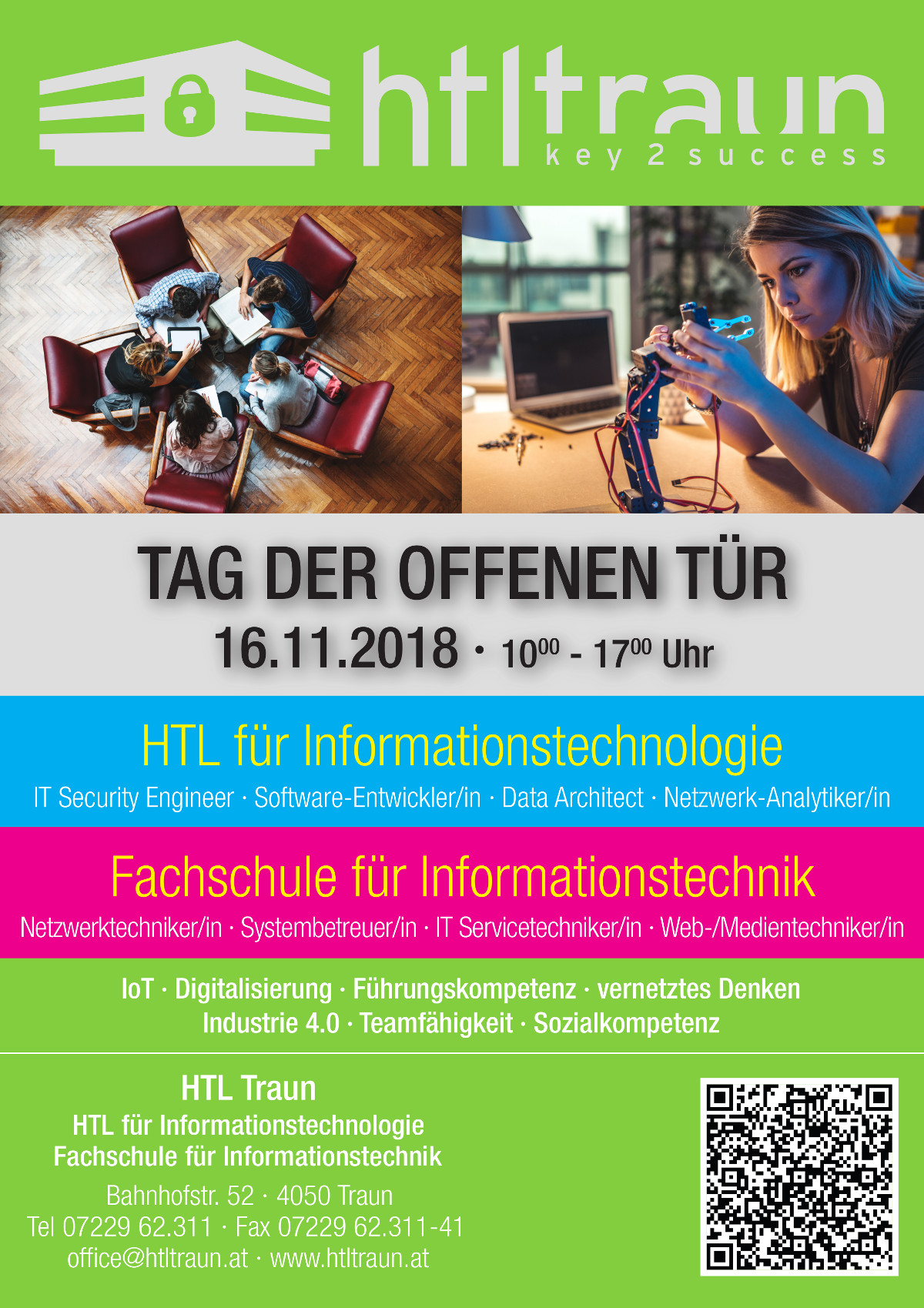 Wir freuen uns auf zahlreiche Besuche unserer zukünftigen (aber auch ehemaligen) SchülerInnen! Auch das Sekretariat ist an diesem Tag bis 17 Uhr besetzt.