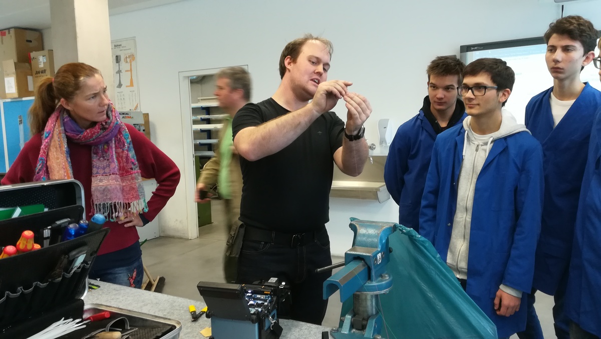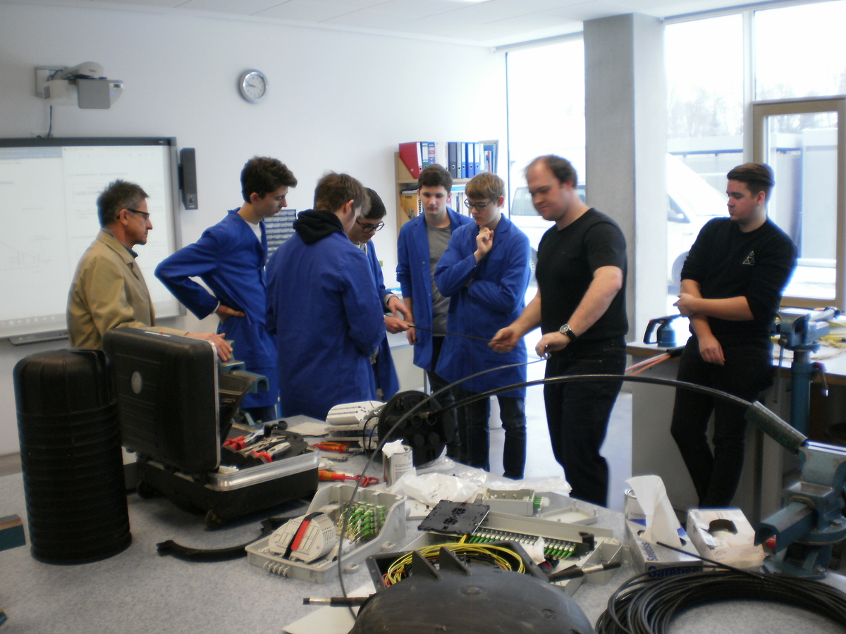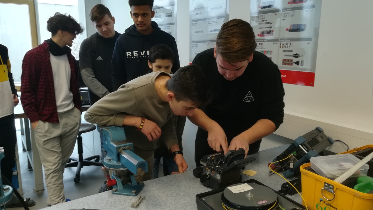 Am 23.1.2019 hatten wir Besuch vom Spleißtrupp der ÖBB Infra ASC Linz. Die Herren Florian Schwingenschuh und Alexander Brandt konnten uns sehr anschaulich von ihrem Arbeitsalltag berichten und unseren Schülern die Vorgänge dieser Spezialistentätigkeit zeigen. Monomode- und Multimode-Fasern, Muffen, Geräteträger, 19" Einschübe, Innerbetriebliche Ausbildungen ... all diese Punkte wurden angesprochen, vorgezeigt und nebenbei alle Fragen der Schüler beantwortet. Einige Schüler durften mit den Spleißgeräten einmal selbst einen Spleißversuchen. Das Ergebnis wurde dann umgehend vermessen und bewertet. Eine tolle Erfahrung!