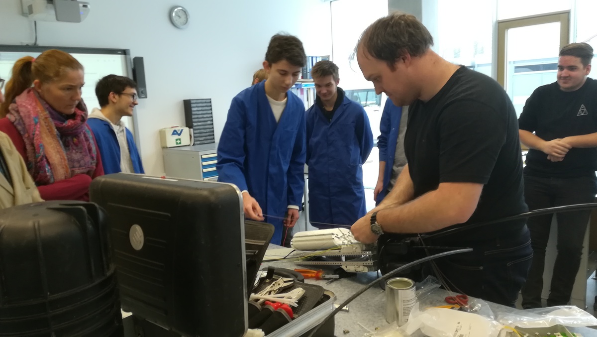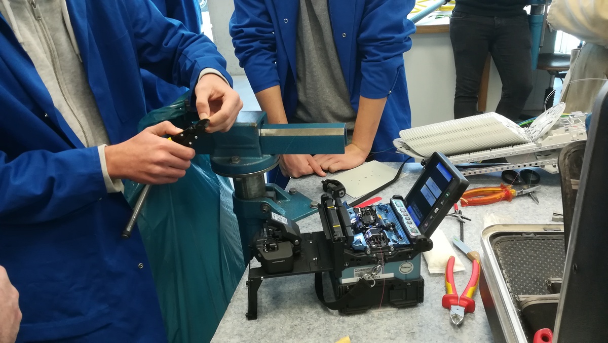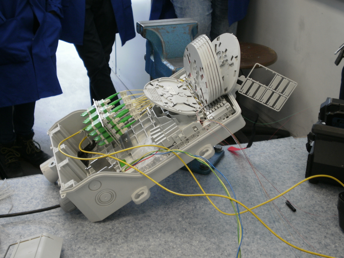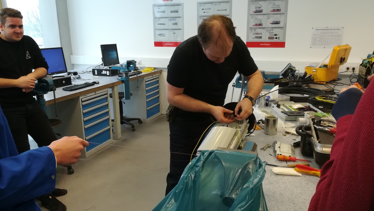 Am 23.1.2019 hatten wir Besuch vom Spleißtrupp der ÖBB Infra ASC Linz. Die Herren Florian Schwingenschuh und Alexander Brandt konnten uns sehr anschaulich von ihrem Arbeitsalltag berichten und unseren Schülern die Vorgänge dieser Spezialistentätigkeit zeigen. Monomode- und Multimode-Fasern, Muffen, Geräteträger, 19" Einschübe, Innerbetriebliche Ausbildungen ... all diese Punkte wurden angesprochen, vorgezeigt und nebenbei alle Fragen der Schüler beantwortet. Einige Schüler durften mit den Spleißgeräten einmal selbst einen Spleißversuchen. Das Ergebnis wurde dann umgehend vermessen und bewertet. Eine tolle Erfahrung!