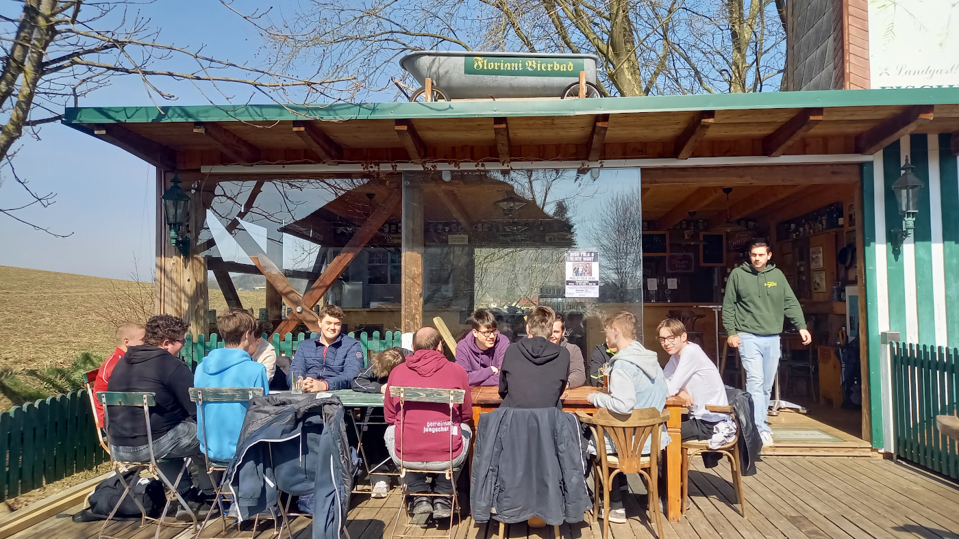 Diesem Sprichwort gemäß lachte die Sonne vom Himmel, als sich am Mittwoch, 20.3.2024 eine kleine Gruppe von Schülern auf die schon traditionelle Osterwallfahrt der HTL Traun nach Dörnbach begaben. Von der Schule ging es quer durch Traun über Pasching und Thurnharting zur Wallfahrtskirche Dörnbach. Nach einer kurzen Andacht in der Kirche machten wir Mittagspause in der kleinen Privatbrauerei "Florianibräu", wo wir uns bei Wurst, Brezen und "Bierradi" stärken konnten.